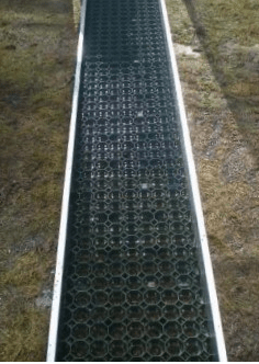 Į takelio atskyrimo komplektą lentutės, plytelės ar kita užpildanti medžiaga neįeina. Takelio išklojimui skirtas plyteles-korius, taipogi galite įsigyti mūsų el. parduotuvėje.