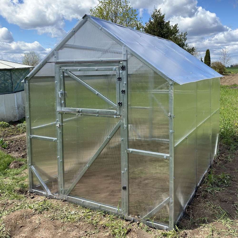 Šiltnamis komplektuojamas su ilgaamže kanalinio polikarbonato danga (galima rinktis 4 mm arba 6 mm storį).