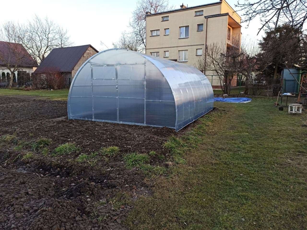 🏭 4 m plotis ir 2,3 m aukštis Įspūdingas plotis leidžia formuoti kelias lysves su plačiais praėjimais. 2,3 m aukštis – patogu dirbti su aukštaūgiais augalais ir užtikrina stabilų mikroklimatą visame tūryje. | 💪 40×20 mm cinkuotas profilis Stačiakampis profilis su papildomais sutvirtinimo elementais – karkasas atsparus sniego apkrovoms ir stipriems vėjams net esant dideliems 4 m matmenims. |
