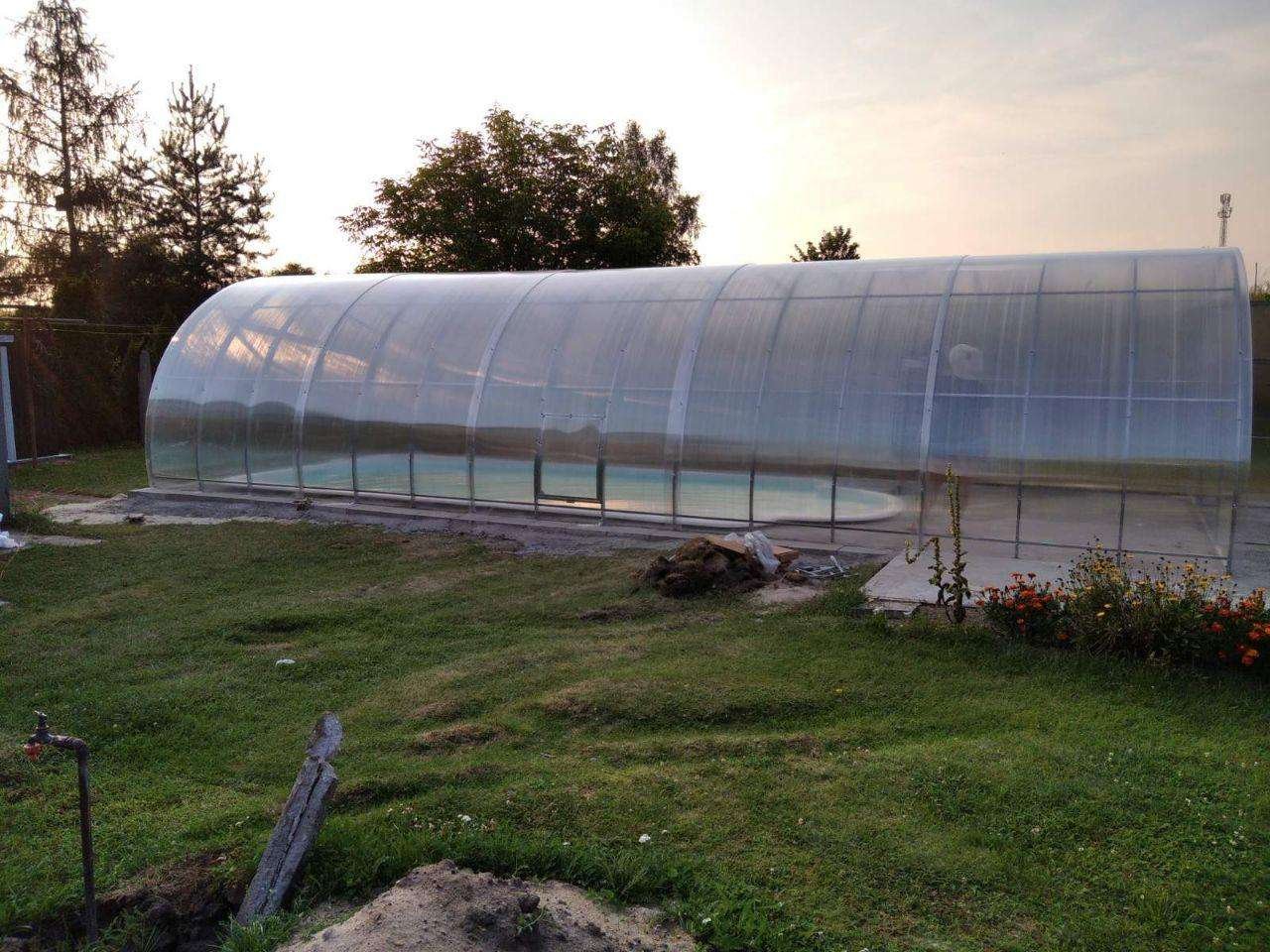 🔩 Be dangos Tik karkasas – jei norite pasirinkti dangą patys arba jau turite polikarbonato. | ☀️ 4 mm polikarbonatas Ekonomiškas variantas su UV apsauga. Tinkamas vidutinio sezono auginimui. | 💎 6 mm polikarbonatas Sustiprintas variantas – geresnė šiluminė izoliacija, didesnis atsparumas. Rekomenduojamas. |