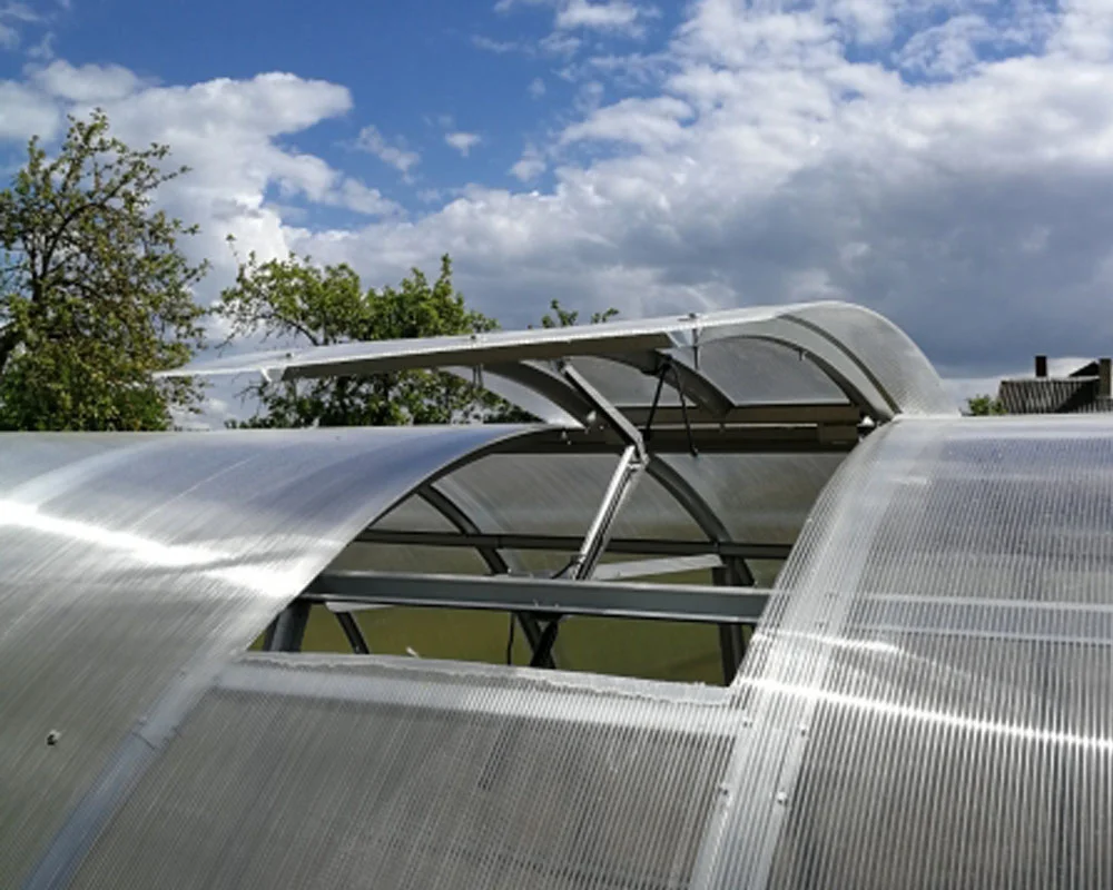 Universalumas ir tvirtumas: Šis stoglangis pagamintas iš aukštos kokybės cinkuoto plieno, todėl yra ilgaamžis ir atsparus korozijai. Jis sukurtas taip, kad puikiai derėtų prie standartinių arkinių šiltnamių konstrukcijų.