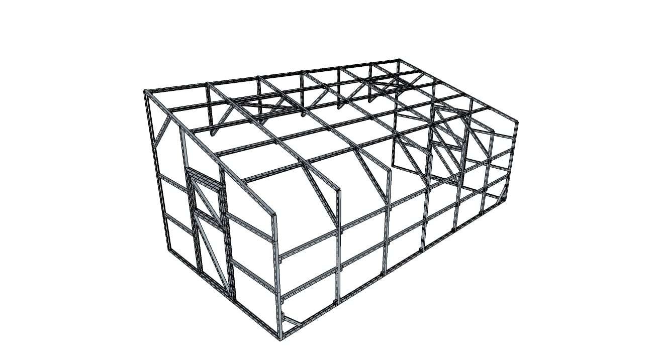Rėmas: cinkuotas U profilis 40×40 mm, surenkamas iš atskirų elementų.